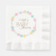 This Pastel Winter Wonderland Baby Shower Napkins design is an adorable pastel sugar plum fairytale, featuring a clean minimalist white background for black and golden brown text with handwritten script, creating a simple and neutral modern style. This classic arrangement is sweetly embellished with cheerful festive garlands of Christmas ornaments and stockings, candy canes, snowflakes, puff balls and stars, with pretty floral bouquets and cute Christmas trees; a unique and colourful aesthetic sure to bring smiles to family and friends for your perfect winter baby shower. As with all of our designs, if you have any questions or would like something special designed for you, please just ask.