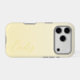 A trendy personalized pastel yellow iPhone case, with a soft gradient design and modern calligraphy script font.