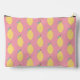 Modern illustrated lemon pattern in pastel yellow on pink personalised travel accessory pouch.