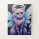 This puzzle features an adorable pastel fairy cat with glowing halo and iridescent wings, whimsical fantasy art of a wide-eyed angelic kitten - perfect for magical décor.
