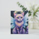 This postcard features an adorable pastel fairy cat with glowing halo and iridescent wings, whimsical fantasy art of a wide-eyed angelic kitten - perfect for magical décor.