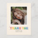 Thank friends and family for joining your graduation celebration in style with this single photo thank you postcard. It features space for a photo over the words "thank you" written in bubble letters in pastel colours.