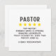 Simple 5 Star Pastor Card depicts 5 yellow stars and the funny phrase "Pastor: 5 Stars. Top-notch! Sermon game is strong. Amazing counselor. Truly blessed to have this pastor lead us. Highly recommend." This funny and thoughtful Pastor card is great for pastor appreciation, Pastor birthday, Pastor anniversary, or for any time you want to show how grateful you are to have such an awesome pastor in your life.