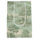 Pastoral Sage Green Toile Countryside Farm Scene 1 Medium Gift Bag