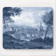 Pastoral Toile III by Claude Lorrain. Features a bridge and pastures done in beautiful inky blue hues.