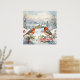 Stunning cosy watercolor Chrismtas scene with two robins in a snow and holly berries. Red festive script "Merry Christmas"