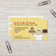 Cute cartoon pastry chef holding a stack of frosted cupcakes and a layered chocolate cake. Back side of card looks like a layered yellow cake with white frosting. Whimsical curly font for your name or company name. A cool business card for bakers, caterers, pastry chefs, cupcake companies, and bakeries. This cute cake maker’s business card is available in a variety of paper types. A fun card that your customers will want to keep and share with friends.