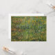 Pasture in Bloom by Vincent van Gogh is a vintage fine art post impressionism landscape nature painting. A view of a green grass lawn, field or meadow with a single dandelion flower on a farm.