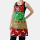Patch Work Ugly Sweater Pattern Christmas Apron. Displayed is different classic christmas pattern with gold glitter design. Christmas Red Green Apron Design, Christmas Aprons. Christmas Trees Border, Customise and Personalise with Chef Name Christmas Aprons. Hung christmas stockings add to the glory of christmas.