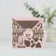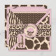 Wild safari brown and cream patchwork animal prints with 3D-look bow and trims with giraffe name tag and cupcake circle tag sixth birthday invitation card design.