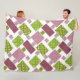 Patchwork brown green polka dots white back fleece blanket