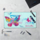 Patchwork Pattern Butterflies Design Desk Mat with customisable text.