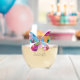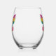 Colourful Patchwork Butterfly Design Stemless Wine Glass with customisable text.