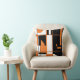 Featured is a bold, vibrant, geometric design in orange, black, and white. The abstract image is transposed horizontally on each side, creating matching looks. Inspired by the Mid-Century Modern design style, this is a vivid and stunning design with the overall slant creating a sense of fluid movement. This is an artistic and minimalistic look in the simple lines and bright colours, but projects a sophisticated and polished quality for living area, bedroom, workspace, terrace, or patio decor. This also offers a feeling of warmth, a relaxed and peaceful ambience for your personal home space, a place for retreat and contemplation while away from the noise of the everyday world. There is much decorative potential in this accent piece, which fits in with a numerous styles, from retro/vintage to rustic ranch to modern urban loft or high rise.