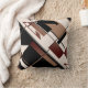Featured is a bold, vibrant, geometric design in tan, brown, black, and beige. The abstract image is transposed horizontally on each side, creating matching looks. The diagonal slant creates a sense of fluid movement and activity. This is a sophisticated and muted but chic design, which projects an artistic and classy quality, while offering a feeling of calm, a relaxed and tranquil ambience for your personal home space, a place for retreat from the frenetic everyday world. There is much decorative potential in this accent piece, which fits in with a numerous styles, from retro/vintage to rustic ranch to modern urban loft or high rise.