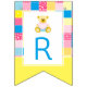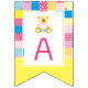 Patchwork Gold Bear, Baby Shower bunting flags. Perfect for baby showers and children's birthday parties.