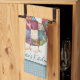 A cute little chicken theme kitchen towel that is personalised with your name. Hen is created in a colourful patchwork patterned design with a tiny polka dot background in blue. See other kitchen decor items in this same design collection.
