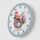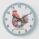 A cute little chicken theme kitchen clock that is personalised with your name. Hen is created in a colourful patchwork patterned design with a tiny polka dot background in blue. Your choice of various styles. See other kitchen decor items in this same design collection.