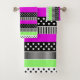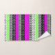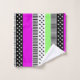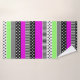 Patchwork of black and white and neon stripes with crimson and green fabric