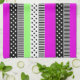 Patchwork of black and white and neon stripes with crimson and green fabric