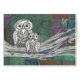 Mixed media using collage and drawing techniques. Original hand drawn, owl design scanned on to different background to make a truly unique piece. A great card for owl lovers.