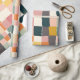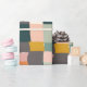 This artwork features a cosy and inviting patchwork pattern composed of irregular squares in soft, muted pastel shades. The design includes a variety of colours such as blush pink, mustard yellow, sage green, and warm grey, all arranged in a grid-like formation. The hand-drawn edges of the squares give the pattern a slightly rustic and handmade feel, adding warmth and character to the overall composition. The combination of colours and the irregular, organic shapes create a harmonious and pleasing visual effect, reminiscent of a quilt or textile design.