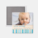 Show off your new little guy with this fun and playful blue and brown striped pattern design magnet. It's easily customised with your baby's photo and important details and makes a really special one-of-a-kind baby announcement or gift.