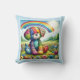 This pillow captures the essence of joy and whimsy with a patchwork puppy sitting in the midst of a lush, colourful flower field. Each segment of the puppy's quilted body is a kaleidoscope of patterns and hues, reflecting a cheerful and vibrant personality. A radiant rainbow arches gracefully in the sky, symbolising hope and dreams, while the bright sunshine adds warmth to the serene landscape. This playful pup invites viewers into a world where imagination blooms as freely as the flowers at its paws. The overall effect is one of happiness, perfect for adding a touch of playful charm to any product.
