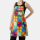 This apron has a Bauhaus design of squares with odd shapes inside, repeated across the design.