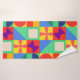 This towel set has a Bauhaus design of squares with odd shapes inside, repeated across the design.