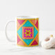 Quilt art based on original art features favourite patchwork quilt blocks plus unique blocks created by Phyllis Dobbs in vibrant and dynamic colours. Show your love of quilting with these designs while drinking your favourite beverage in this mug. Fully customisable.