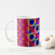 A colourful coffee mug that will delight any quilting enthusiast, with a design from a patchwork cot-quilt by Judy Adamson.