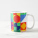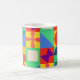 This mug has a Bauhaus design of larger squares with odd shapes inside, repeated across the design.