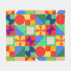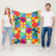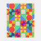 This medium fleece blanket has a Bauhaus design of squares with odd shapes inside, repeated across the design.