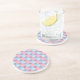 An attractive, sandstone drinks mat or coaster, with a patchwork of pink and blue denim pattern, from a handpainted watercolour design by Judy Adamson.