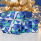 Modern geometric patchwork triangles with classic snowflakes peeking through the background.