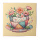 Patchwork Teacup with Whimsical Flowers Ceramic Tile