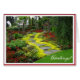 View into a lovely garden. Silvery path leading through fields of beautiful red and yellow flowers, palm trees and cypresses. Water. Photo taken at Flor and Fjaere Park, Stavanger region, Norway. Full set of various frames included, feel free to play with new colours and effects! Text can easily be customised or removed.
