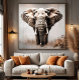 A majestic African elephant walks calmly and with dignity across the savanna, its imposing presence reflecting the strength and wisdom of nature. The golden dust raised by its feet and the endless sky in the background create a serene and powerful scene, celebrating the grandeur of wildlife
