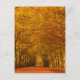 Vertical postcard of a walking path through the golden beech trees in a forest in autumn colours in fall season in the Netherlands.