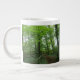 This awesome mug features a photograph taken in a forest in England. The beautiful trees glow with an intense green as they reach up towards the sky. A small path winds its way deep into the woods surrounded by tall trees.