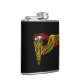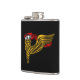 The flask itself is fine. It’s a cheap flask, obviously bought in bulk, however am prepared to overlook that. Given that it is a personalized item, I would have liked to have seen gift boxing instead of the generic packaging. Terrible printing, and/or quality. It’s a cheap, tacky vinyl. It is not cut straight and is also applied in a way that it is overhanging the bottom, causing the glue to catch on items and it will eventually roll and tear, damaging the wrap.