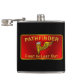 The flask itself is fine. It’s a cheap flask, obviously bought in bulk, however am prepared to overlook that. Given that it is a personalized item, I would have liked to have seen gift boxing instead of the generic packaging. Terrible printing, and/or quality. It’s a cheap, tacky vinyl. It is not cut straight and is also applied in a way that it is overhanging the bottom, causing the glue to catch on items and it will eventually roll and tear, damaging the wrap.