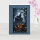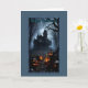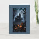 Embrace the eerie spirit of Halloween with this hauntingly beautiful card featuring a classic spooky scene. A decrepit, shadowy house looms in the background, surrounded by bare, twisted trees that reach into the night sky. The pathway leading to the house is lined with glowing jack-o'-lanterns, their flickering candlelight casting an ominous glow. The "Happy Halloween" greeting hovers at the top, inviting recipients to step into the mysterious world depicted on the card. Perfect for anyone who loves the spooky charm of Halloween, this card is ideal for sending a festive yet frightful message to friends and family.