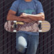 The elephant is said to attain old age and with all its wisdom, the animal is highly revered for its strength and power. *design of an elephant walking through light and mist on a skateboard deck.