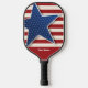 Crafted with precision and designed to perform, this paddle seamlessly blends the beauty of the American flag with the finesse of pickleball. The paddle's face features the iconic stars and stripes, vividly capturing the essence of the nation's flag.