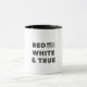 This mug features a bold and patriotic design with the phrase “RED WHITE & TRUE” in capitalised letters. The design includes an image of the United States flag in grayscale, positioned to the right of the text. Made from high-quality, durable ceramic, this mug is perfect for showcasing your national pride while enjoying your favourite hot or cold beverages. The vibrant design makes it a standout piece for any kitchen or office.