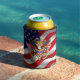 To keep your beverage cold, these can coolers are unique in their choice of designs. I selected the patriotic red, white, and blue flag motif and customized with the individual's name. A sure-fire hit for the ultra patriotic individual!! Many designs are available ...there is something for everyone!! The printing is clear, crisp and just as requested. A novel gift that is sure to please.