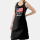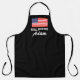 Patriotic American flag black grill master BBQ Apron for men and women. Personalized cooking aprons in black or multi color. Add your own name or funny quote. Create your own unique Birthday party gift for brother, sister, mom, dad, father, mother, wife, husband, friend, grandma, grandpa, stepdad, boss, co worker, chef, cook, colleague etc. Available in small, medium and large size. Also great for 4th of July, dinner party, baking, dish washing, art & crafts work etc. USA pride design with flag of America, United States.