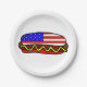 Patriotic American Flag Hot Dog Paper Plates - Fun USA-Themed Party Plates for BBQs & Holidays.